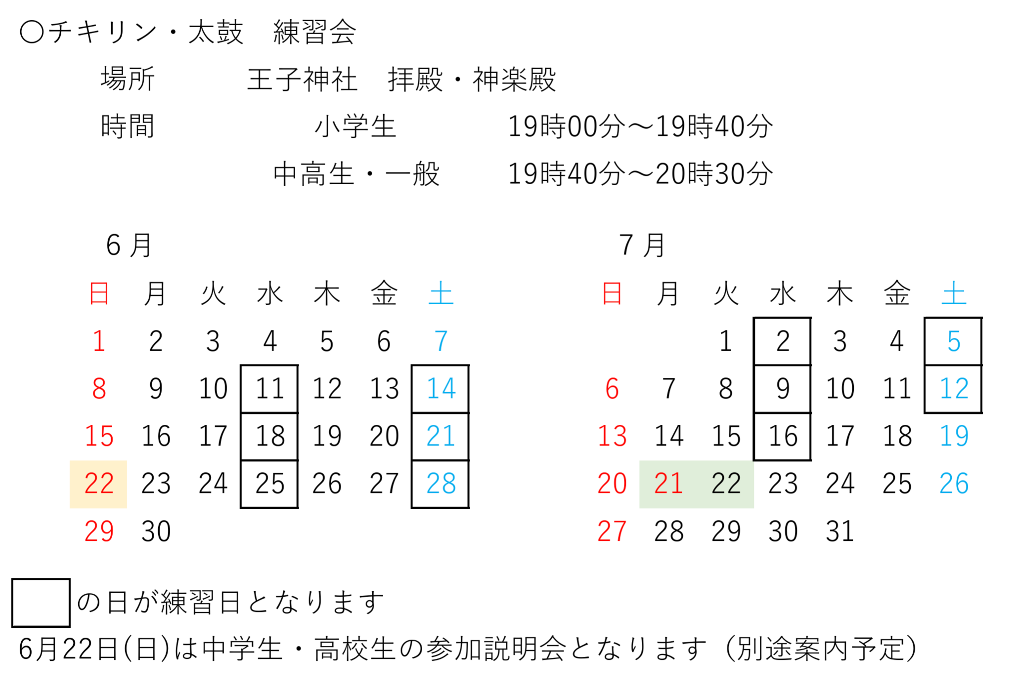 令和7年チキリン練習会予定